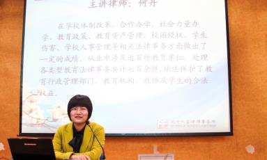2010年4月20日,何丹律师为万泉小学全体教师开展学生安全相关普法讲座