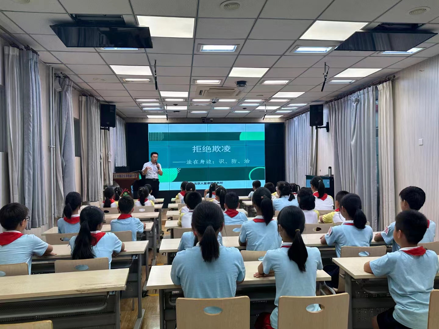 近日,人富律师走进北京一零一中学、台头小学、西苑小学、四王府小学、中古友谊小学、学院路小学、清华东路小学、中关村二小科学城北区幼儿园等学校,开展系列法治宣讲活动。教育普法,只有进行时,没有完成时!